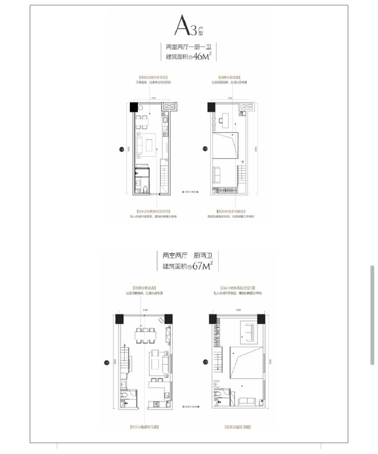 面积:46-67平米,层高4.2米