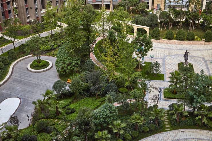 社区内打造2.5万㎡法式中庭,50%超高绿化率