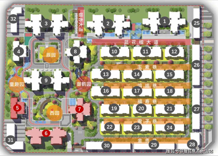 低密宜居社区:占地117亩,建筑密度仅21.5%,绿化率达30.3%,打造高舒适度居住环境。