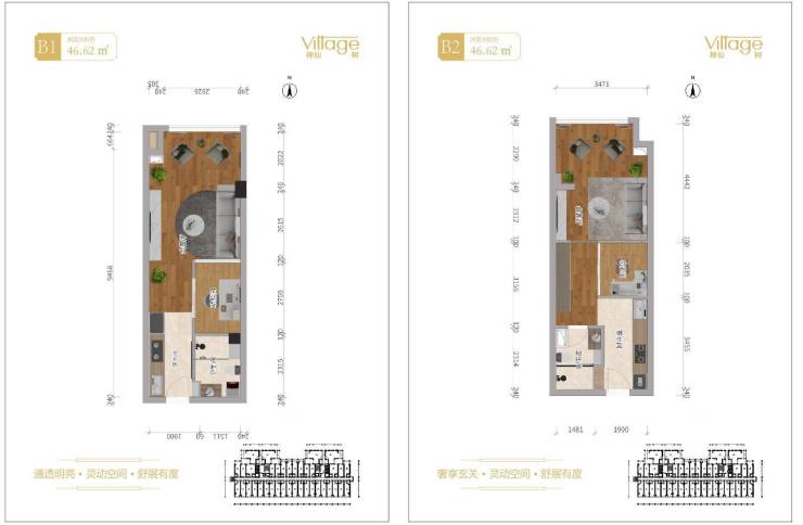 【户型图】A1、A2 大通厅一室一厅(有无玄关区别)