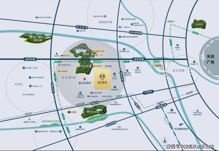 项目项目南北侧是24亩市政公园,距离温江地标光华公园约500米,700亩碧落湖公园,城市中央公园、创智湖公园在侧,坐拥四大城市公园,尽享生态舒居。
