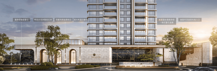 ▌材质之琢磨 » 甄选与玉相得益彰的伟大金石设计团队匠心甄选超15种珍贵石材匠造新川天珺,以莫奈绿曲面奢石、白玉冰裂纹石材、意大利蓝白奢石铺陈65米超长门廊,以珍宝级黄虎眼石、绿野仙踪大理石、巴西天然矿石等奢石镶嵌归家路途;所有金属铝板统一运用欧洲巴洛克艺术色彩"范戴克棕”,更以水纹铝板打造传奇冠顶,一眼即倾心。