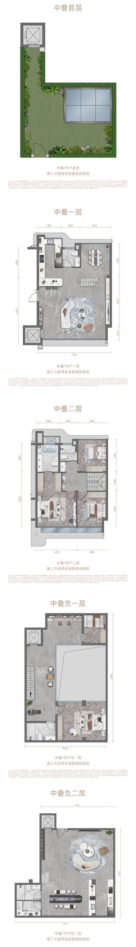 叠拼面积 :上叠120㎡/中叠318㎡/下叠380㎡