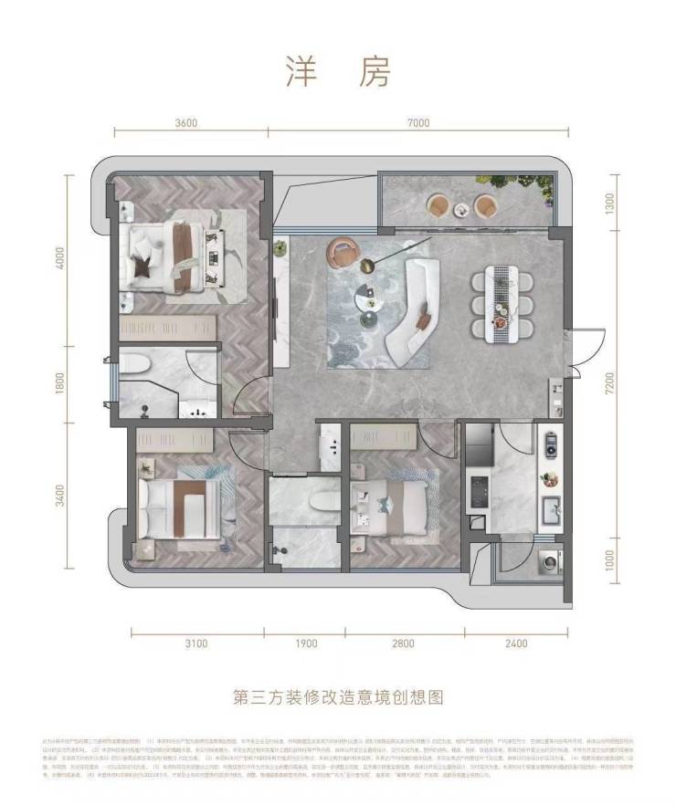 洋房面积:91㎡ 套三两厅双卫