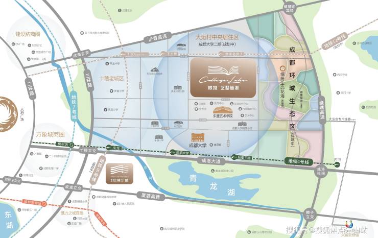 比邻成都大学、东盟艺术学院,人文艺术氛围浓厚,区域内规划专业剧场、音乐厅及成都最大图书馆。
