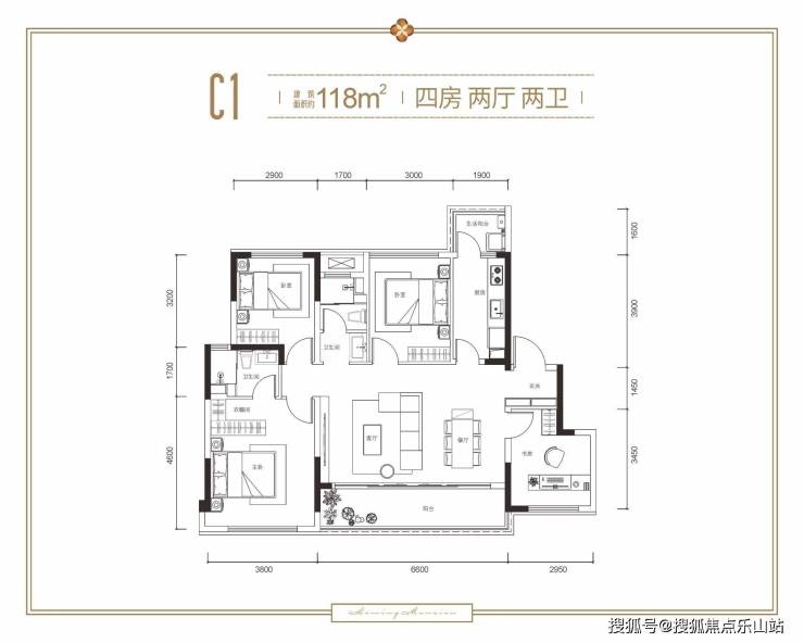 建面约118㎡ 四室两厅两卫
