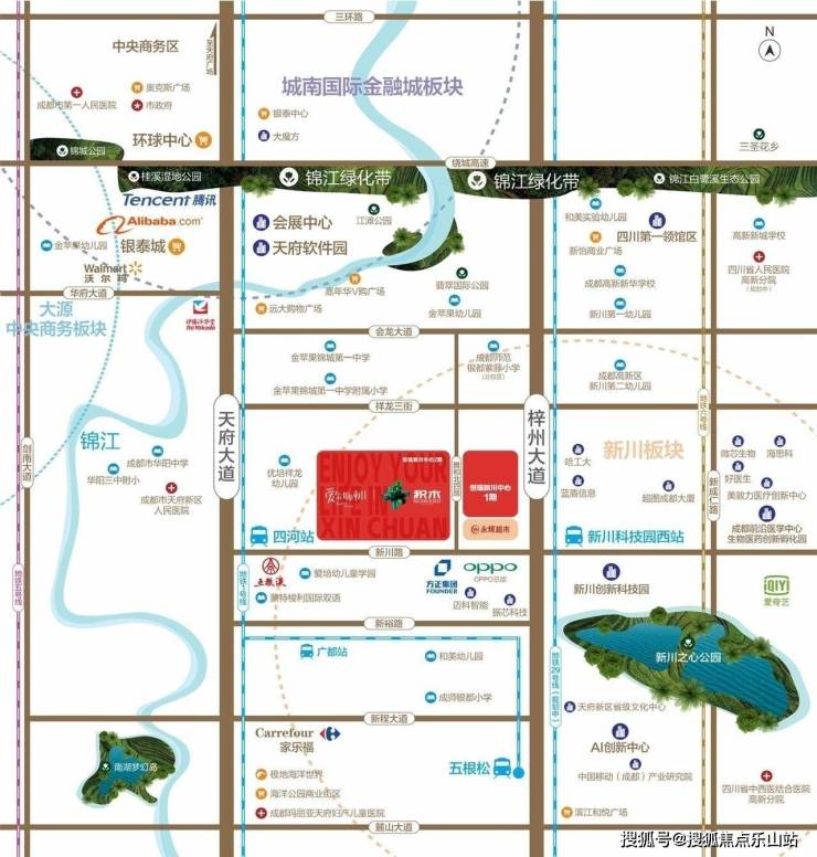 世界向东,中国向西,成都向南,千亿高新,成都向南门户。项目位于高新区内新川板块门户位置,处于高新区和天府新区的核心枢纽位置