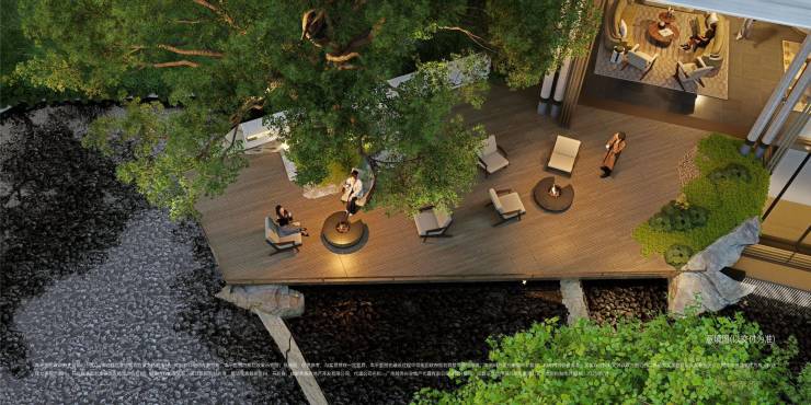 【高山流水遇知音】不出城郭而获山水之怡,身居闹市而有林泉之致复刻古代闲人志士曲水流觞的雅韵盛宴;衔接水庭,雨天可静观涟漪、聆听滴答声,契合“巴山夜雨”的诗意栖居;煮茶听雨,檐下一天,偷得浮生半日闲。