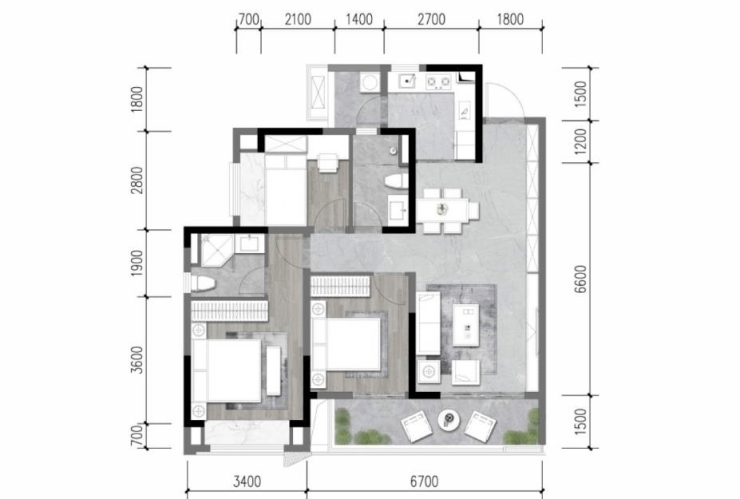丨建面约108㎡ 精致舒居三房丨💥入户玄关设计,归家仪式感💥6.7米宽景阳台,尺度感强💥约21平米星级酒店主卧套房💥L型独立厨房+独立生活阳台