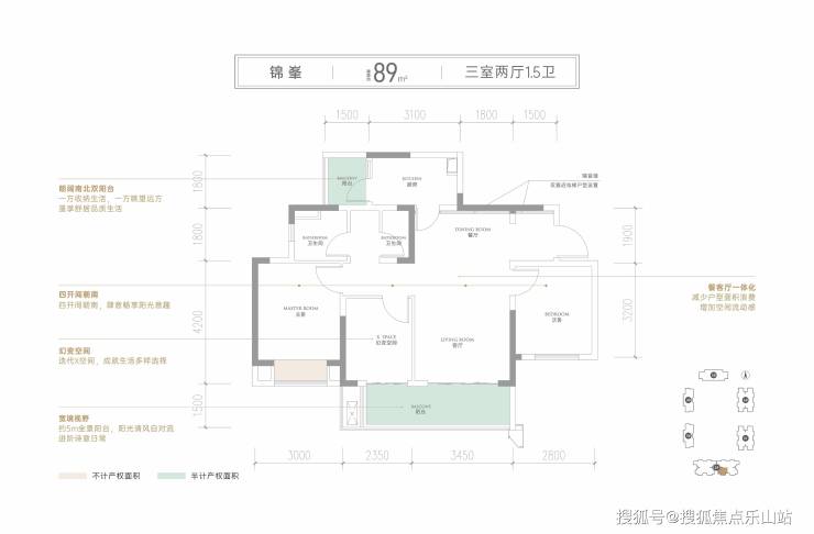 锦峯--建面约89㎡(三室两厅1.5卫)
