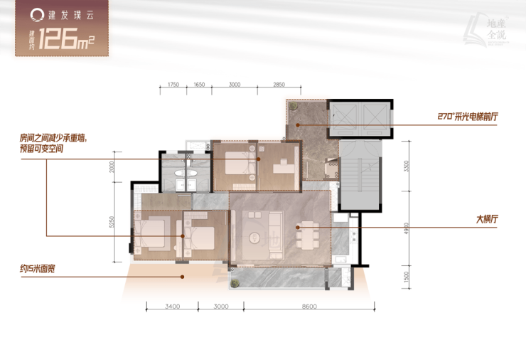 16米面宽+5开间朝南,主卧套房配置独立衣帽间;