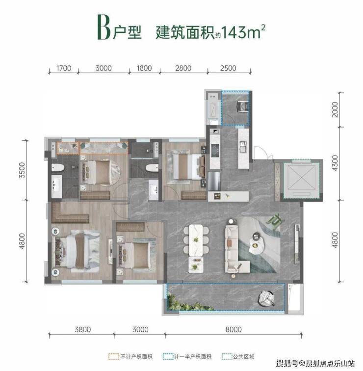 作为产品体系的一部分,悦湖·金茂悦的户型设计和装修标准都非常好,算是加分项。其中主力户型只有两种,125平3+1房两厅双卫和143平四房两厅双卫。