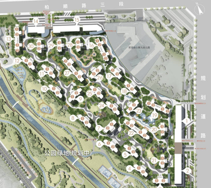 占地约500亩,向东北步行约300米即达,包含绿化、景观、绿道、配套设施等多个方面功能,可以满足老年人、儿童、青少年等全龄群体对公园绿地休闲娱乐的需求。