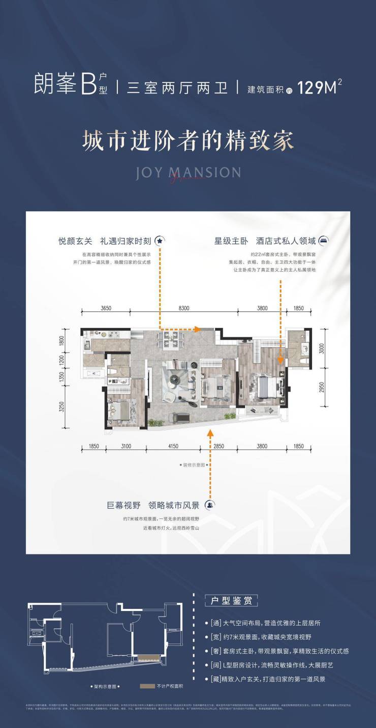 朗峯B户型|129㎡3室2厅2卫城市担当者的精致家