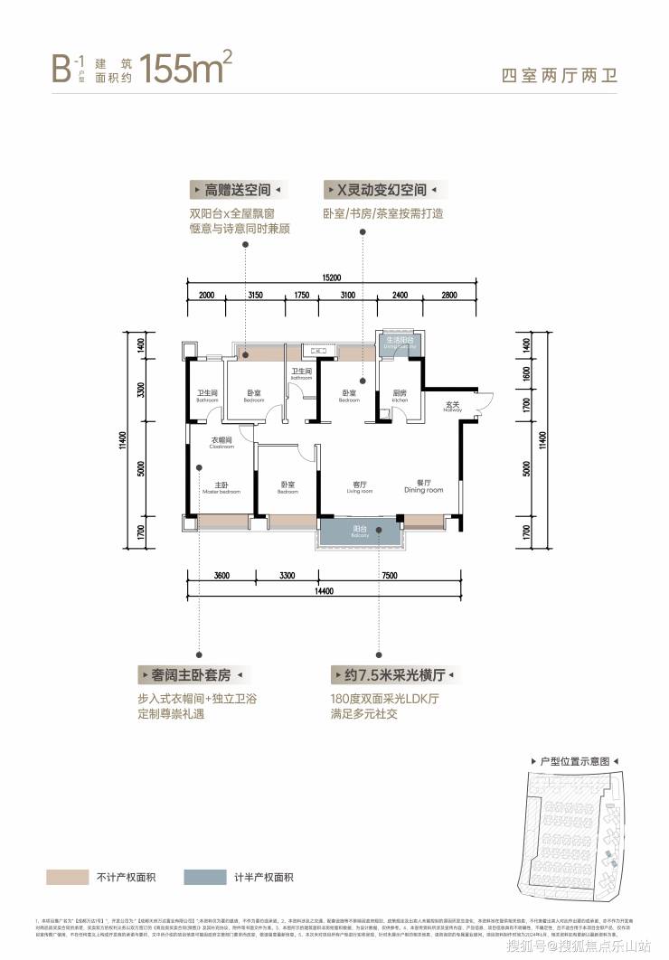 155㎡:四房设计,主卧套房+双阳台,空间利用率高。