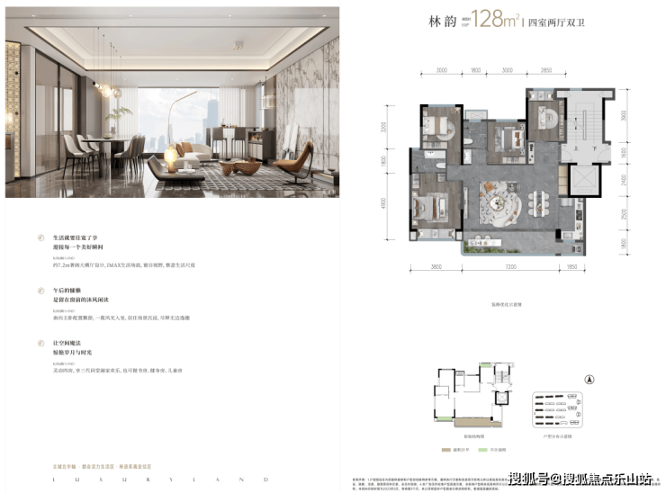 全周期户型设计:主力户型113-143㎡,覆盖改善需求,梯户比灵活(2T4/2T2/1T2),层高2.95-3米,空间舒适度高。