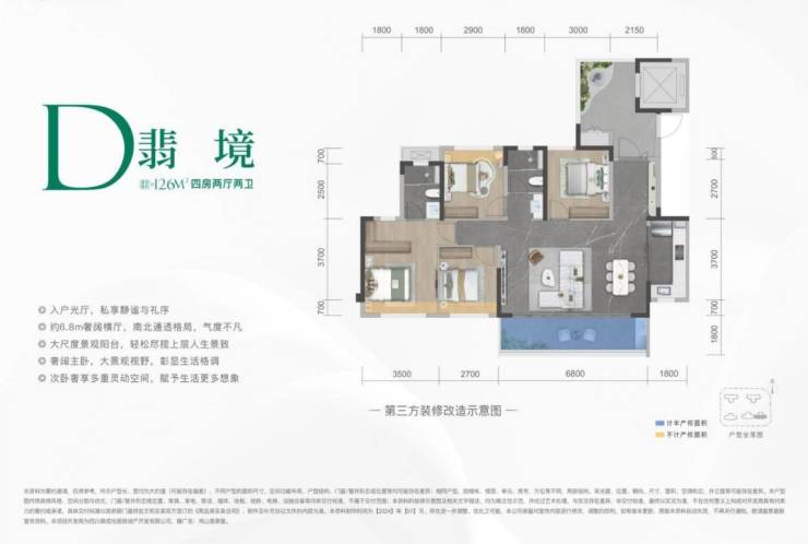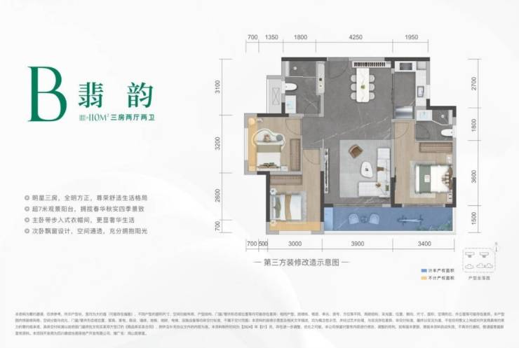 待开面积:110-121㎡(套三套四)