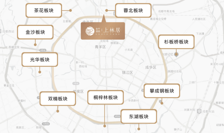 主城二环串联茶花、金沙、光华、双楠、桐梓林、东湖、攀成钢、杉板桥等高品质居住板块
