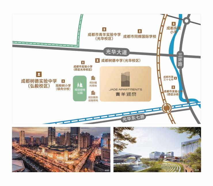教育:2公里内覆盖7所名校,含实验小学西区光华校区、树德中学光华校区(注:学区划片以交付后政策为准);