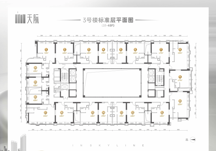 【总体套数】:约900户【户型面积】:40·49·68·85㎡【单层面积】:约1200㎡【梯 户 比】:9梯20户【≈1T2户】【公 摊 率】:约32%【赠 送 率】:约6%【户户送飘窗】【物 业 费】:3.8元/㎡【交房时间】:2024年6月底【准现房】