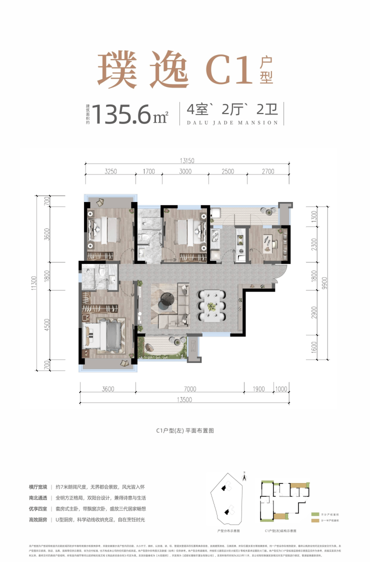 户型核心亮点景观视野116㎡三房双卫+约6.2米南向双阳台体育公园全景135㎡四房双卫+独立玄关+明厨明卫河景+公园双景全系南北通透,零遮挡板式布局