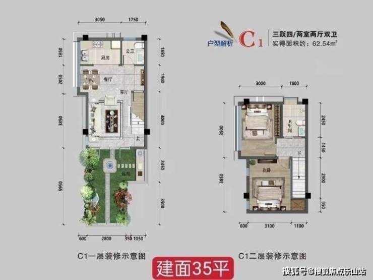 三楼:35平,实得62平,套二70-75万起