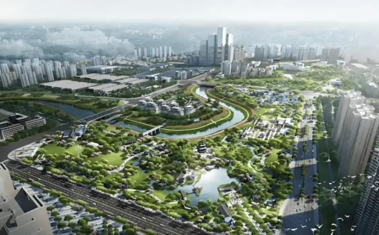 占地约500亩,向东北步行约300米即达,包含绿化、景观、绿道、配套设施等多个方面功能,可以满足老年人、儿童、青少年等全龄群体对公园绿地休闲娱乐的需求。