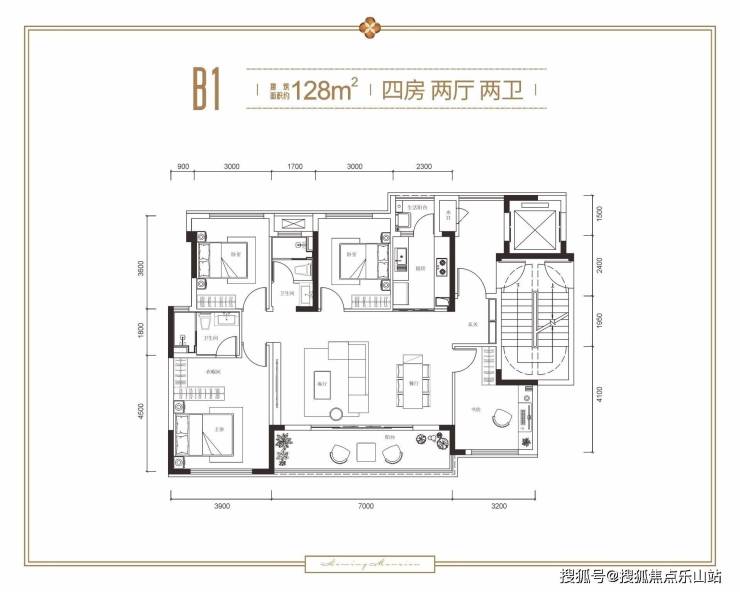 建面约128㎡ 四室两厅两卫