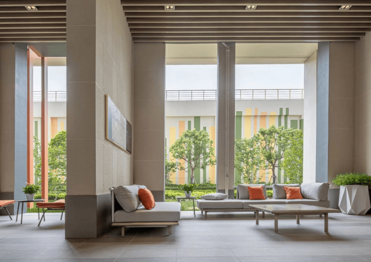 全楼栋首层架空,挑高约5.4米!打造半开放式的泛会所,与园林相互渗透一边享受精奢会所空间,一边欣赏自然风光!
