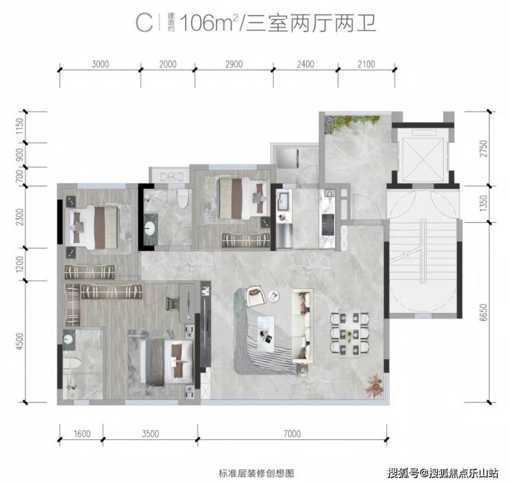 户型天花板,100%得房率