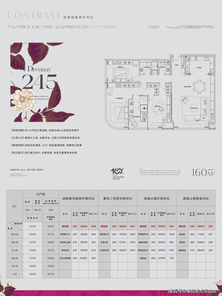 成都嘉佰道位于市中心绝版地段,百年川大望江楼隔江相望,千年锦江熠熠生辉,安顺廊桥,合江亭,东大街,九眼桥,占据历史文化的先机。以222米的绝版高度,塑造成都对话世界的居住高度。全国目前在售的最高双塔建筑,由阿玛尼大师亲制打造永久传世之作。城市封面的一张明信片。