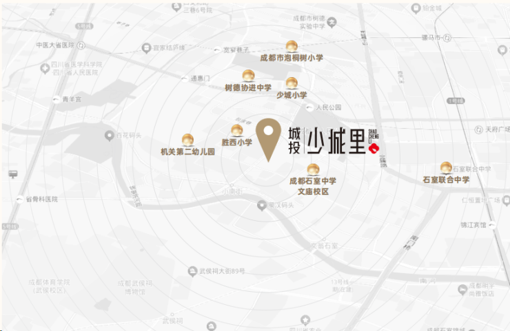 项目位于城市内环青羊区,为“中优”战略重点实施区域,新城、源城双擎发展;板块地处蜀汉博览乐活线及青羊区中优区域规划重要单元,北连皇城坝,祠堂街,南连武侯祠、宽窄巷子等,聚集成都市区优质文游资源,教育资源,未来片区还将构建天府文化公园,打造文博创意集聚区和金融高端商务集聚区。