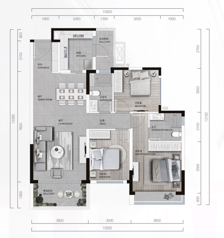 116㎡的户型,是未来之城的最小户型,也是改善置业的入门面积段。
