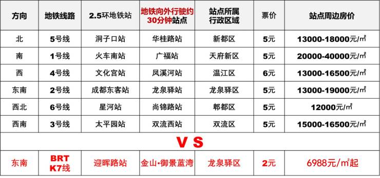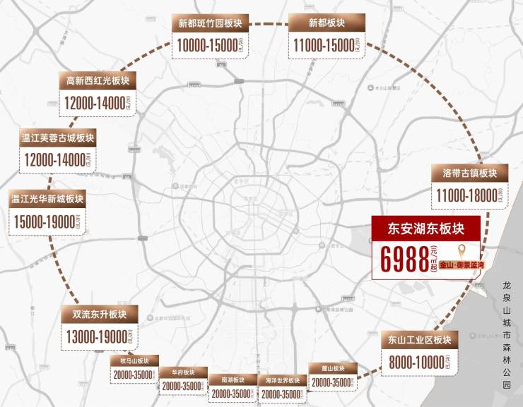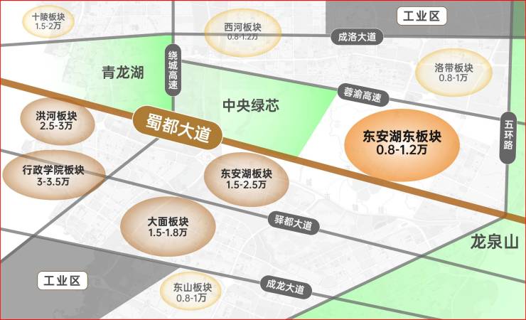 东进价值主轴——「蜀都大道」沿线板块价格对比