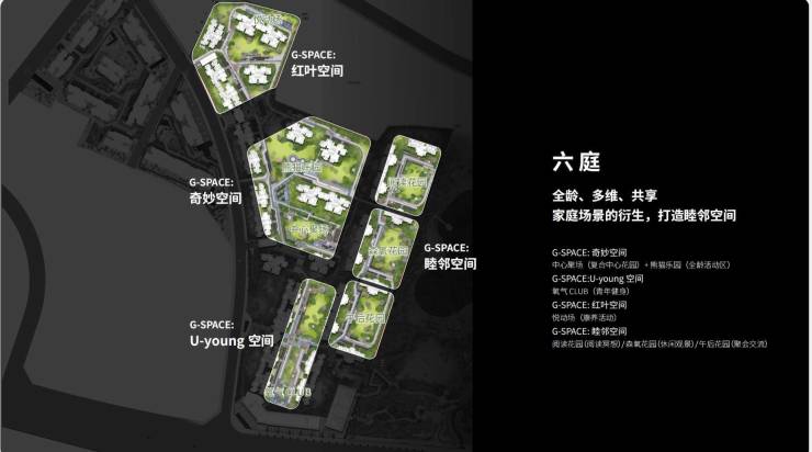 容积率2.3,50%绿化率,采用多组团围合式布局