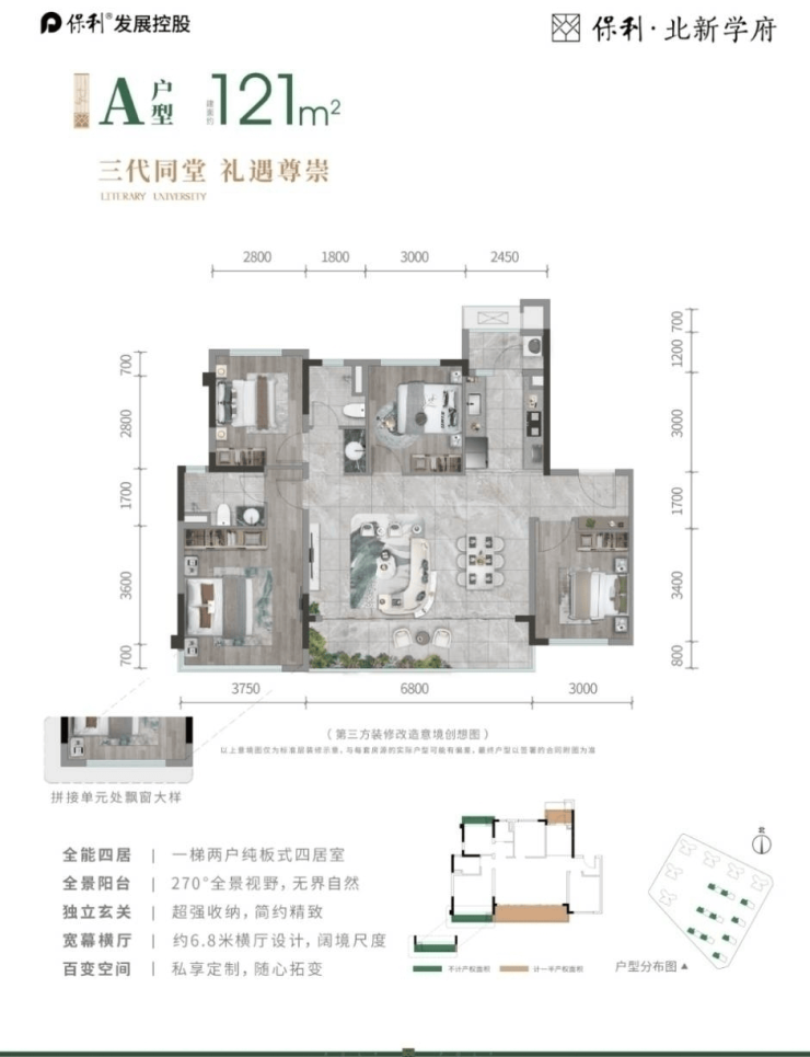 ✅ 121㎡套四实得103㎡:洋房15%公摊+南北通透板式