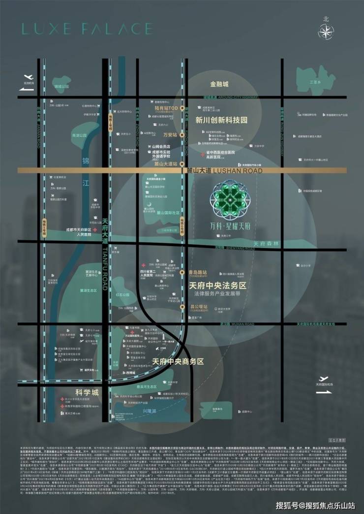 ①交通-四纵三横三地铁:四纵-天府大道、自泸高速、梓州大道、夔州大道;三横-麓山大道、沈阳路、武汉路; 三TOD:青岛路、昌公堰、万安站;②商业-生活圈:以麓山大道横向贯穿风情商业麓镇、全球最大的山姆会员店、滨江和悦广场;夔州大道纵向通达天府中心的暹罗广场、天府国际保税中心、天府大悦城;③医疗-三甲聚集:川省第二人民医院,万达国际医院,天府华西医院;④生态-城市绿洲:区域以公园城市理念打造,右侧规划 620 公顷应龙湾天府公园,主要将打造公园+田园的新型生态公园模式;⑤教育-全龄接驳:麓山光亚学校(小学高中,成都贵族学校前2名)、天府三中、成都实验外国语学校为教育核心驱动力,周围覆盖 0—18岁全齡段高端教育资源,幼儿园:包含天府六幼、万安幼儿、金苹果幼儿园等9所幼儿园;小学:天府2小、天府6小、万安小学、白沙小学、天府三中小学部;中学:天府三中(k12 教育,小学高中)距离木项目一街之隔。