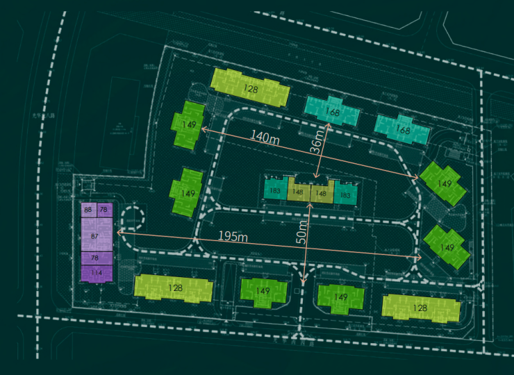 仅556户,楼间距140-195米,3万㎡中庭园林,外光华罕见。