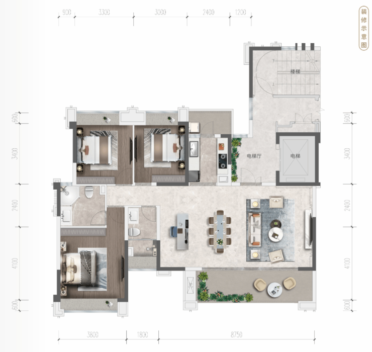 精装标准2970元/㎡,含新风+中央空调+地暖,物业为中海物业(3.7元/㎡/月)。