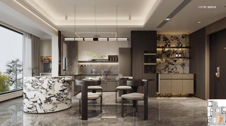 125m²套四双卫横厅设计,大四房得房率107%,套内实得面积约133m²媲美市场其他产品143m²左右套内实得面积