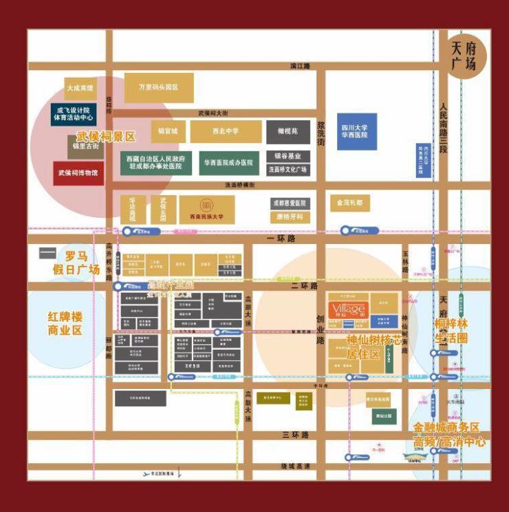 🚄通达交通,商圈环伺:华西成办医院、华西医院;高升桥、罗马广场、金茂礼都拉萨茶庄。紧邻二环路南四段、高新大道创业路、九兴大道,神仙树北/南路等多条主干道,距离地铁5/8号线九兴大道站仅约500m,桐梓林、玉林、红牌楼、天府广场等热门商圈环伺。