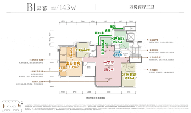 亮点:尺度对标170㎡+豪宅,十字厅设计+双套房配置。