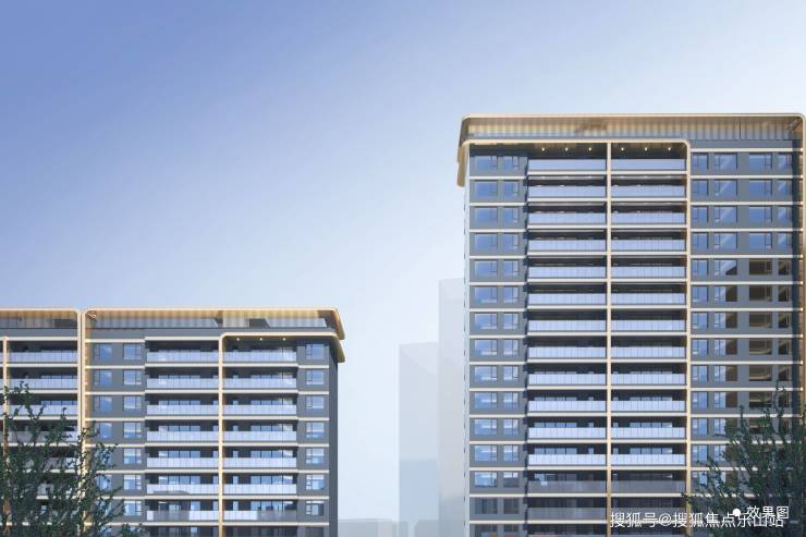 ⑤ 现代美学风格,高颜值光幕立面现代时尚的建筑风格,整体外观庄重大气,蓝灰色LOW-E玻璃搭配浅香槟色金属铝板,建筑顶部使用冷咖色装饰百叶,层次鲜明,在阳光照射下熠熠生辉,巧妙的光影魔法,简约而美观,成就新川理想家园。