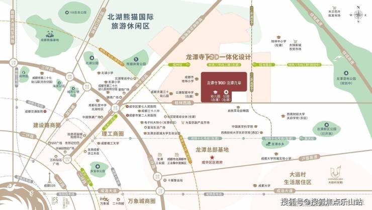 一轴是城东的发展轴——成华大道,从成都地标339天府熊猫塔出发,延线经过建设路、理工大、北湖成熟商圈。