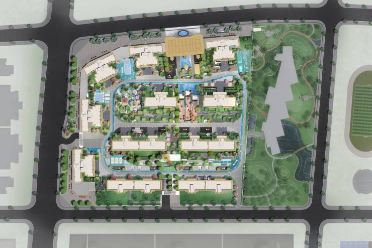 社区景观灵感来源于新加坡城市度假森系园林,借鉴华尔道夫酒店的归家礼序及酒店式配套,并融入千年蜀锦文脉,打造全龄化精彩社交园林。