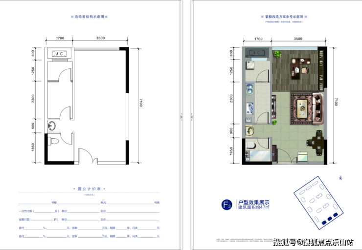 SOHO:F3户型建筑面积约47㎡