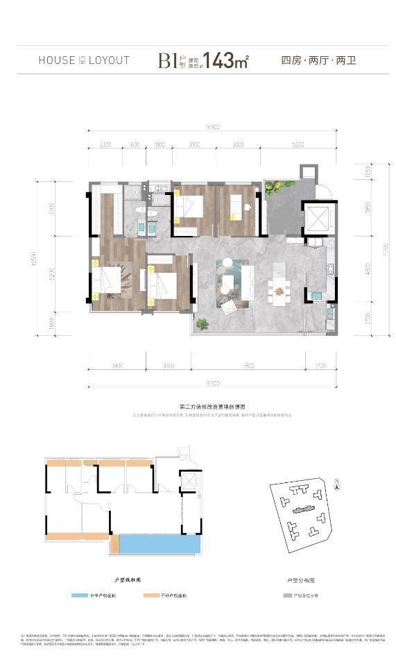 103㎡:三房两厅,总价190-200万,适合首改家庭