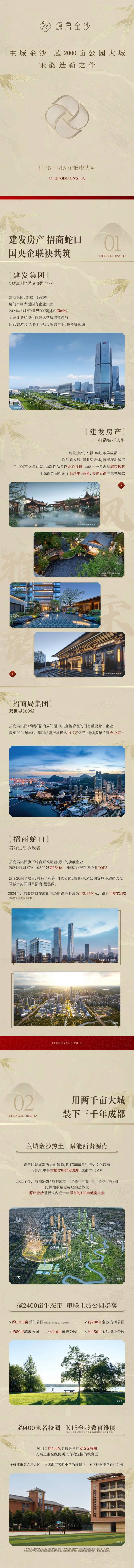 建发招商源启金沙落子成都西贵金沙板块,由建发房产+招商蛇口双强联袂打造,定位纯改善低密大宅。首推128-183㎡宋风精装平层,容积率仅约2.0(注:根据地块特征推测),坐拥2000亩环城生态带,融合宋代美学与现代奢居理念,重塑城西人居标杆。
