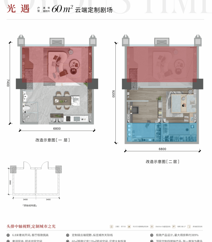云端资产裂变:30㎡LOFT双层设计,实得约45㎡,租金对标中环壹号达3000元/月。