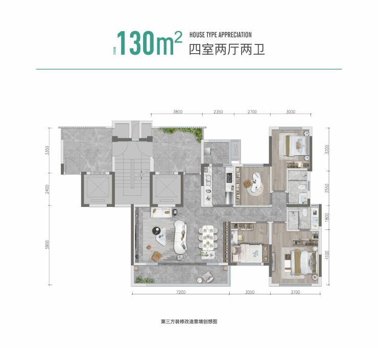 ★建面约130m² 天权星全能进阶四房,天幕花园玄关、奢阔横厅设计、南北双阳台。